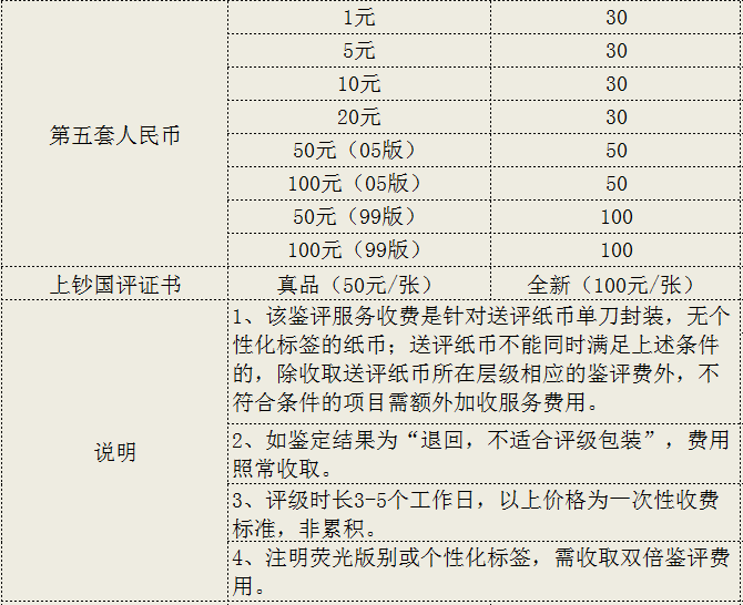 3、上钞国评再次审查确定真伪性,如果真品维持最初的真品认定,我们将按照上钞国评的收费标准收取相应的费用。